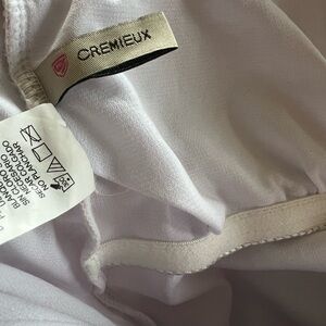 This new with tags Daniel Cremieux one-piece swimsuit in size medium is a stylish and sophisticated choice for beach days or lounging poolside. It features a soft pink and white plaid print with delicate scalloped trim along the edges, adding a feminine and elegant touch. The one-shoulder design with a subtly ruffled strap enhances its modern appeal, while the back maintains the sleek asymmetrical silhouette.