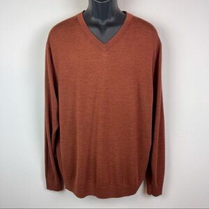 NWT Daniel Cremieux Men Signature V-Neck 100% Merino wool sweater Rust Heather