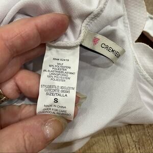 NWT is a beautiful taupe/pale pink and cream checkered one piece swimsuit by Daniel Cremieux. This is a one shoulder style with a built in shelf bra for support. Scalloped edges at legs and chest and back.