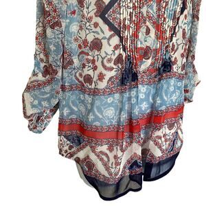 NWT Daniel Rainn Flowy Boho Floral Print Popover Long Roll Tab Sleeves Top XS