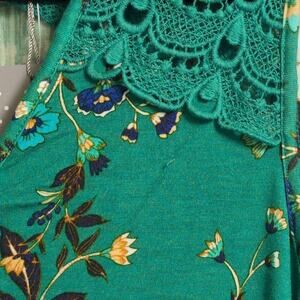 NWT Daniel Rainn Green Floral Sleeveless V Neck Crochet Lace Tunic Blouse 1X