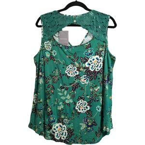 NWT Daniel Rainn Green Floral Sleeveless V Neck Crochet Lace Tunic Blouse Size 1X