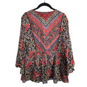 NWT Daniel Rainn L Brown Red Floral Knit Top – Quilted Detail Peplum Boho Chic