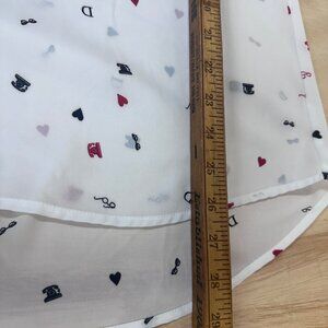 NWT Daniel Rainn Split Neck Blouse White Novelty Print Roll Tab Sleeve Women’s S