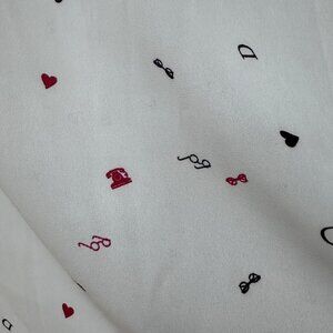 This Daniel Rainn Koda Split Neck Blouse is a chic Stitch Fix exclusive piece, designed for both casual and office-ready looks. Made from lightweight 100% polyester, it features a split neckline, roll-tab sleeves, and a whimsical novelty print with playful icons like hearts, telephones, and glasses.
