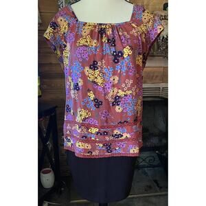 NWT Daniel Rainn Sz Med Floral Embroidered Layered bottom Top