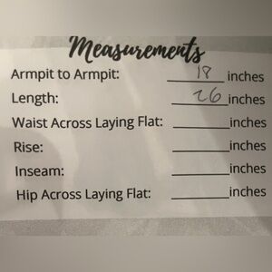 18” p to p | 26” length (laid flat)