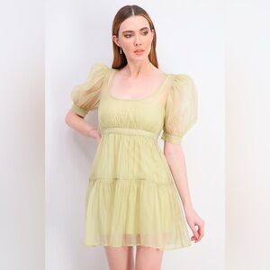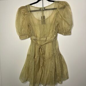 NWT Danielle Bernstein Sheer Organza Puff Sleeve Mini