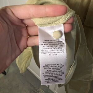 Sheer puff sleeve organza overlay with slip included. Waist band with tie. Subtle polka dot print at the waist and hem of sleeves. Item is new with tags. Very cottagecore fairy core. Size med