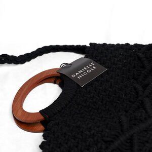NWT Danielle Nicole Black Macramé Fringe Boho Crossbody Shoulder Bag Satchel