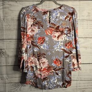NWT Danielrainn Longsleeve Gray Floral Casual Blouse Womans Size Small