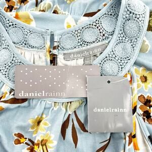 NWT Danielrainn Women's Light Blue Floral High Neck Crochet Midi Dress Size M