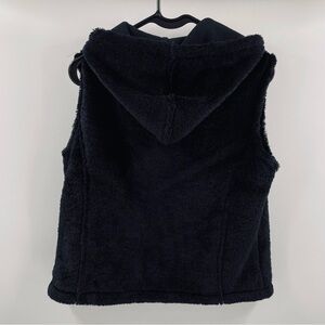 NWT Dankini Polartec Furry Bkack Hooded Zip Front Sleeveless Warm Winter Vest