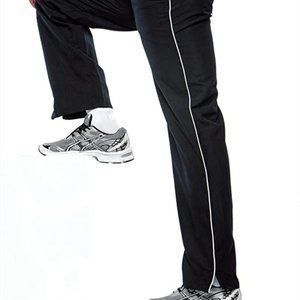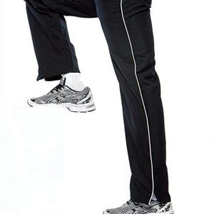 - Black Sweat Pants, Loose Sporty Design w/ White Side Lining. Interior double protection mesh from crotch to knee.