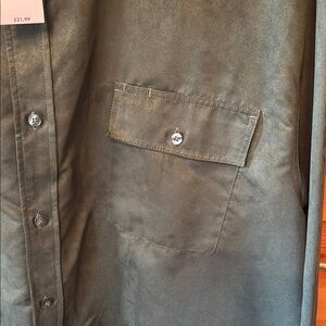 NWT. Stylish dark green button-up shirt with a classic collar and 2 front pockets. Perfect for casual or formal occasions. All buttons intact. Nonsmoking home. No flaws or marks visible.