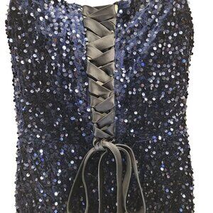 NWT Dark Navy Blue Sequin Evening Classic Sleeveless Corset Back Thigh Slit