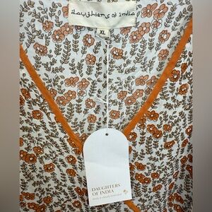 NWT Daughters of India Binita Cotton Floral Orange Apricot Mini Dress Size XL.