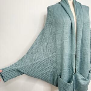Davi & Dani blue dolman sleeve knit pattern cardigan sweater.