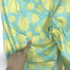 NWT David Brooks Capri Crop Pants Stretch Lemon Print Yellow Blue Pockets Sz 16
