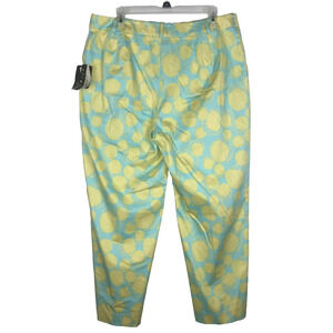 NWT David Brooks Capri Crop Pants High Rise Stretch Lemon Print Yellow Blue Pockets Women's Size 16