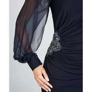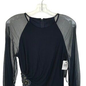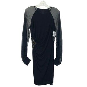 NWT David Meister Womens Size 8 Sheer Sleeve Ruched Side Knee-Length Dress NEW