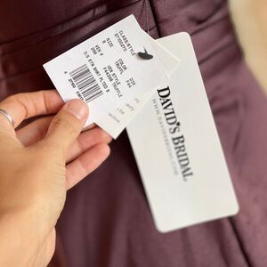 Description: brand new with tags, chocolate brown, one shoulder satin mini bridesmaids dress with zip back closure by David’s bridal in US women’s size 6. there is no stretch to this dress. MSRP $99.