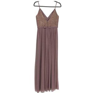 NWT Davids Bridal Rose Gold Metallic Empire Mesh Maxi Bridesmaids Dress size 4
