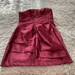 NWT David’s Bridal Short Pleated Satin Strapless Dress Style F14212 Wine Size 18