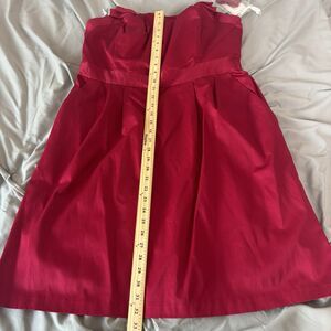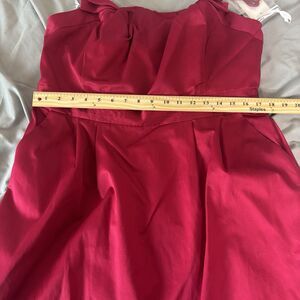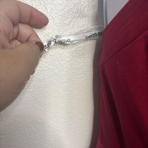 David's Bridal Short Strapless Cotton Dress with Band at Waist in size 16 is a stylish and elegant choice for a wedding or formal occasion. Made from 100% cotton, this red dress features a sleeveless design.