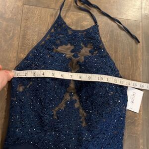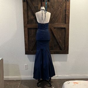 NWT Davids Bridal XSCAPE Bridesmaid Dress Navy Mermaid sheer Formal Dress Prom