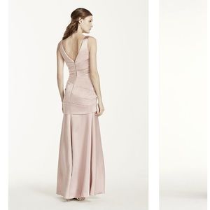 New with tags, never worn. David's Bridal bridesmaid's satin sleeveless dress in persimmon color size 10. (Measurements below) Was purchased for a wedding that never took place. The last pictures are the dress in a different color shown on the model.