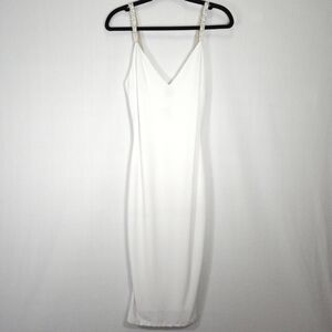 NWT Day & Night Women's White Slip Midi Dress with Rhinestones Straps Size S