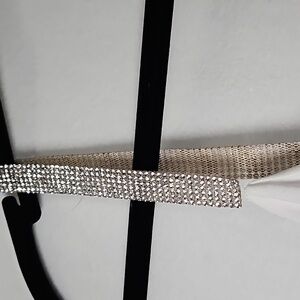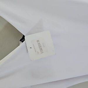 Sling white dress with rhinestones straps. V-neck. It is a very flattering and silhouette dress. NWT. Size S.