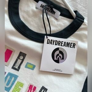 NWT Daydreamer REVOLVE Cotton Tee Women's White Baseball T Shirt "Hi frequency"