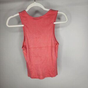 NWT Daydreamer Records Ribbed Graphic Print Tank Top Coral/Blossom Pigment Large