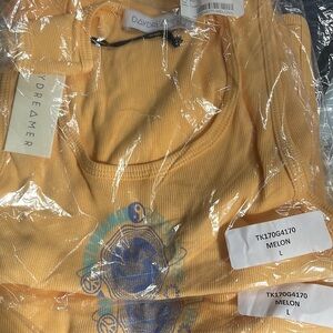 NWT Daydreamer Records Ribbed Graphic Print Tank Top Melon