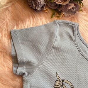 New with tags Daydreamer ribbed pale blue colored Too Sharp for Love graphic baby tee