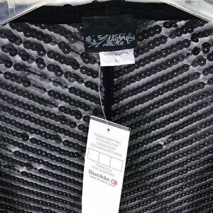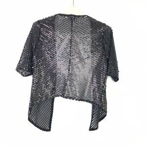 NWT Daytrip Womens L Black Sequin Kimino Jacket Open Front 1/2 Sleeve Cardigan