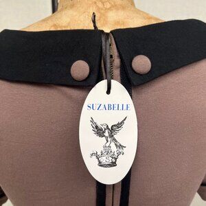 This is deadstock from the early 2000s. This brand Suzabelle had a long run making beautiful sustainable and fair labor clothing. This is one of their earlier pieces The dress has a back zip with decorative buttons and large collar. It has two bucket pockets in the front. This brand runs large so a small would fit a medium. PLEASE SEE THE MEASUREMENTS! The dress is displayed on a vintage size 8 dress form.