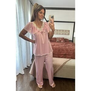 NWT Deadstock Vassarette Size Large Pink Nylon 2 Piece Pajama Set