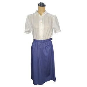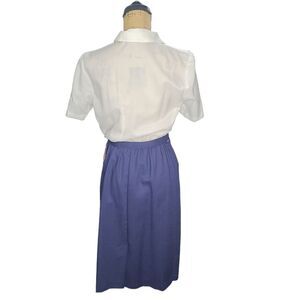 NWT Deadstock Vintage 60s White Navy Button Shirt Waist Beltrd Dress