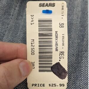Vintage 1970's 1980's (?) New-with-Tags deadstock pair of heavy-duty SEARS COVERALLS Workwear. 100% cotton canvas/twill made in the USA. Coveralls have a long front zipper plus 2 snaps & a strap on one hip & a double pocket on the other. Snap cuffs. 2 front chest pockets, one covered & one not with a space for a writing utensil. 2 roomy pants pockets plus slits for accessing the pockets of your jeans underneath & 2 back pockets. That's a lot of pockets! Quality American-made item before the collapse of the American textile industry - get it while you can because they're not making any more!