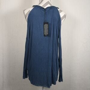 NWT Dear John Cold Shoulder Long Sleeve Top Large in Navy Blue Distressed Color