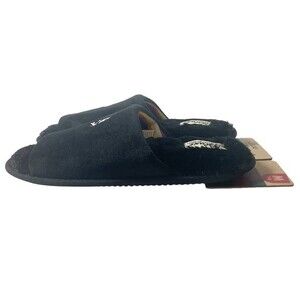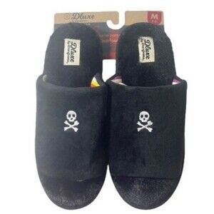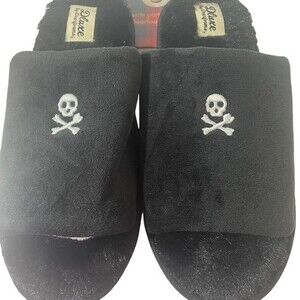 NWT Dearfoams Slipper Women's Size 7-8 Black Plush Slide Embroidered Jolly Roger