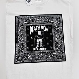 Death Row Bandana Chair Logo Tee features the OG core Death Row Records in the center. Short sleeve, Crewneck.