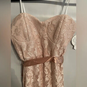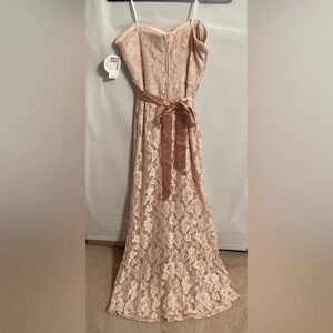 Blush lace prom dress. Inner lining goes to the mid thigh/knee