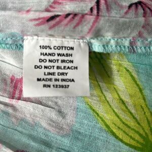 • Color/Pattern: Multi-colored floral print on a light blue base for a fresh and tropical look.