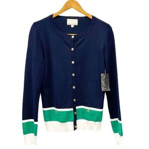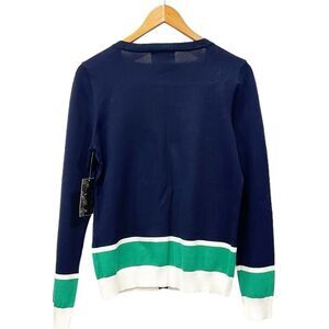 NWT Debbie Morgan Cardigan Sweater Womens M Striped Fine Knit Colorblock Preppy