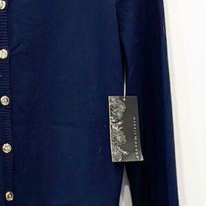 Gold tone buttons closure. Long sleeves. Crew neck. Has stretch. Rayon blend