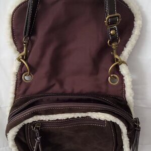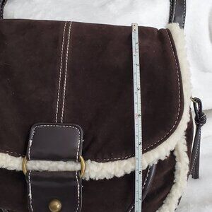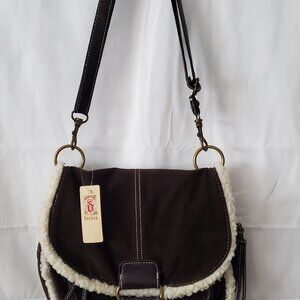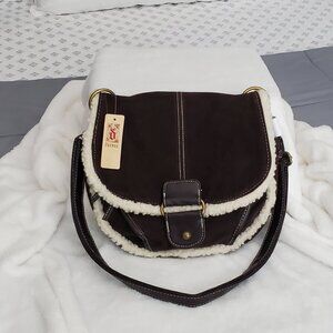 NWT Decree brown faux suede look and cream color sherpa trim purse.